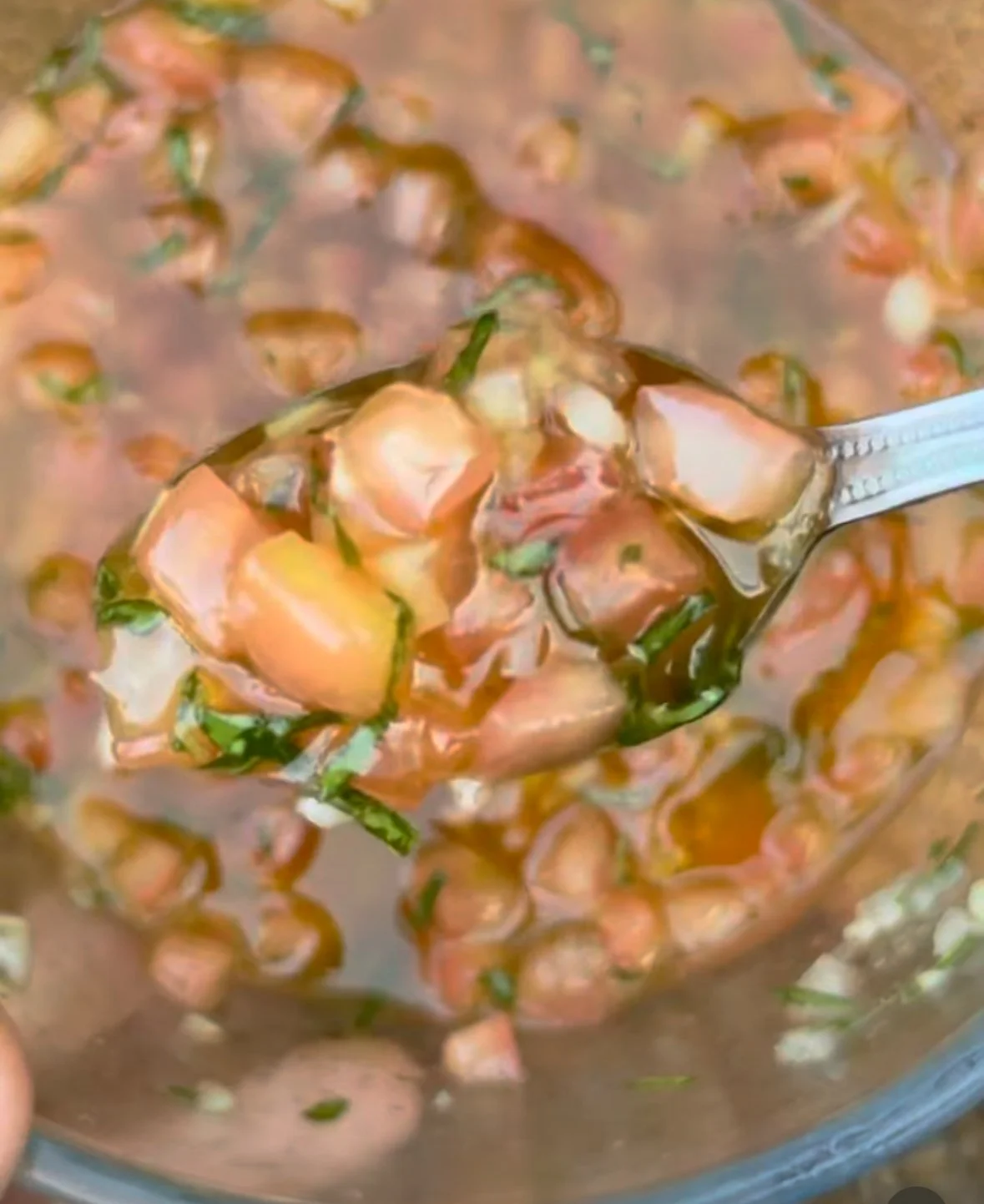 The key here is balance. You’ve got sweetness from the tomato and sugar, sharpness from the lemon, and depth from the garlic and shallot. The oil acts like a carrier—bringing everything together and making it sing. Because it’s not cooked, the flavour stays bright and fresh—exactly what you want when it’s too hot to turn the oven on.
